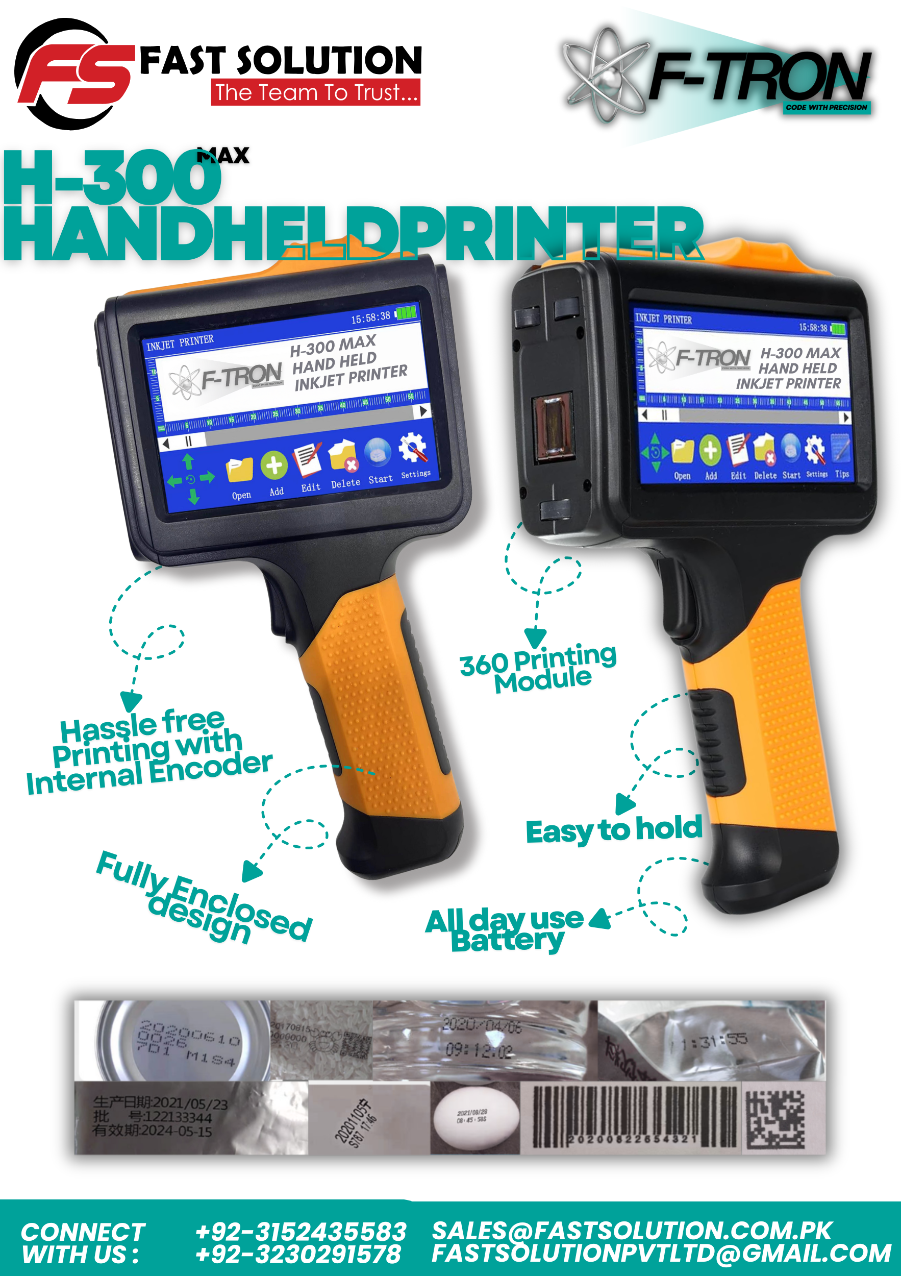 F-TRON H-300 MAX Handheld Inkjet Printer | Industrial Portable Coder.