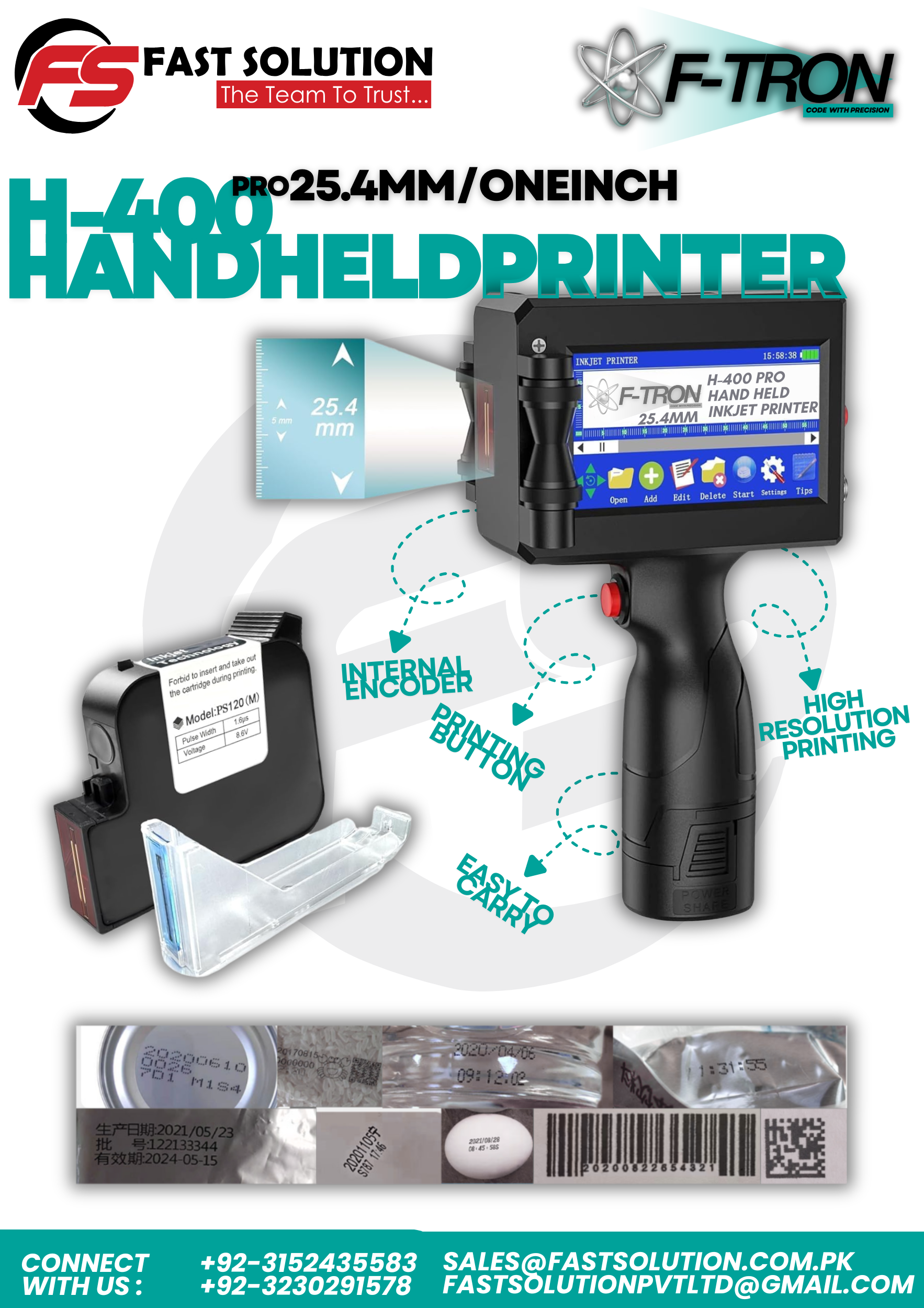 F-TRON H-400 PRO Handheld Inkjet Printer | 25.4mm Large Character