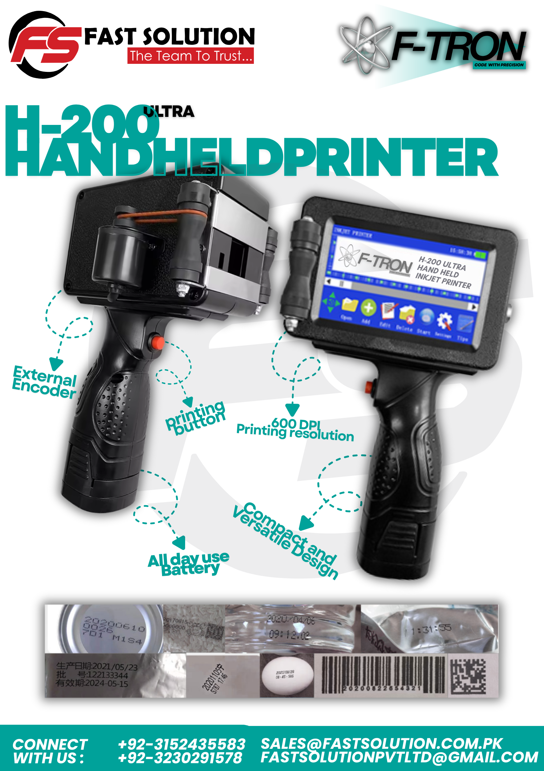 F-TRON H-200 ULTRA Handheld Thermal Inkjet Printer